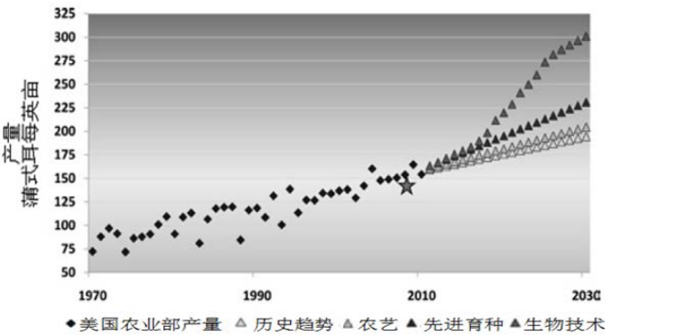 过去40年来,美国的玉米产量翻了一番(图1),主要是由于栽培品种的改善,它利用了土壤管理方面的农业进步并增加了种植密度。通过生物技术特征、培育和农业经济的共同进步,生物技术的发展能帮助农民在2030年以前再次实现玉米、大豆和棉花产出加倍。